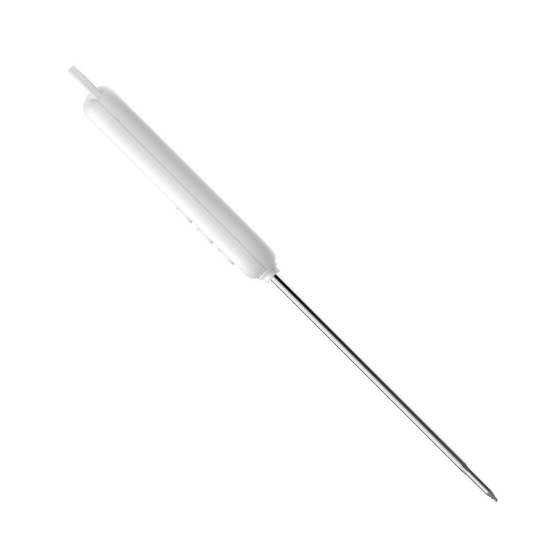3.Đặt đầu dò vào sản phẩm cần đo, phần cảm biến nhiệt độ (khoảng 20mm) phải được nhúng hoàn toàn vào vị trí bạn muốn đo. Các phép đo được thực hiện mỗi giây. Nhiệt độ hiển thị chính xác là nhiệt độ đang ở đâu. sự ổn định.