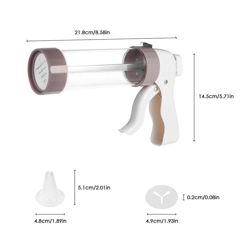 - 3.Kích thước của Súng trang trí bánh quy: 21,8 * 14,5 * 5,5cm / 8,58 * 5,71 * 2,17in (L * W * H)