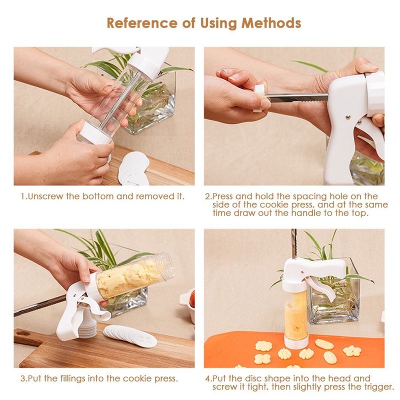 - 3.Bộ súng bấm bánh quy với tay cầm cò súng bằng nhựa ABS dễ cầm.