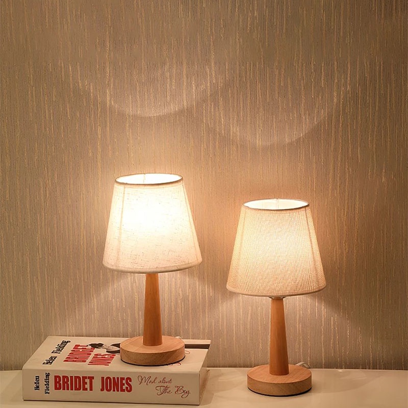 Đèn ngủ này là thiết kế theo phong cách tối giản, đế bằng gỗ nguyên khối cao cấp với bóng vải và độ sáng có thể điều chỉnh độ sáng.