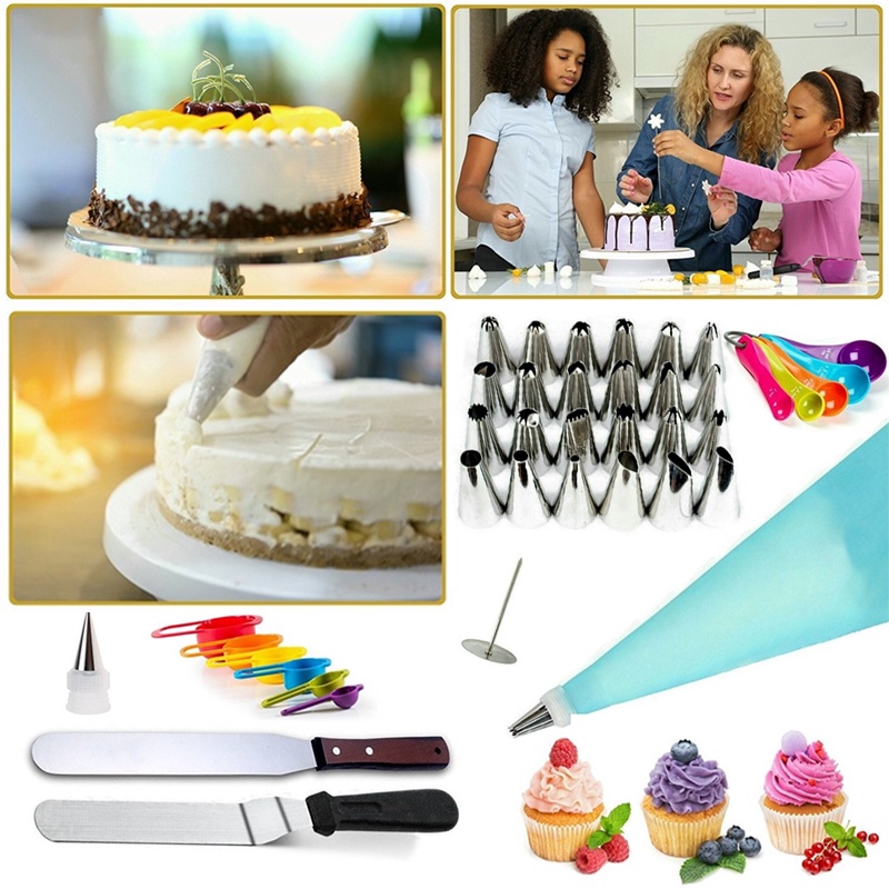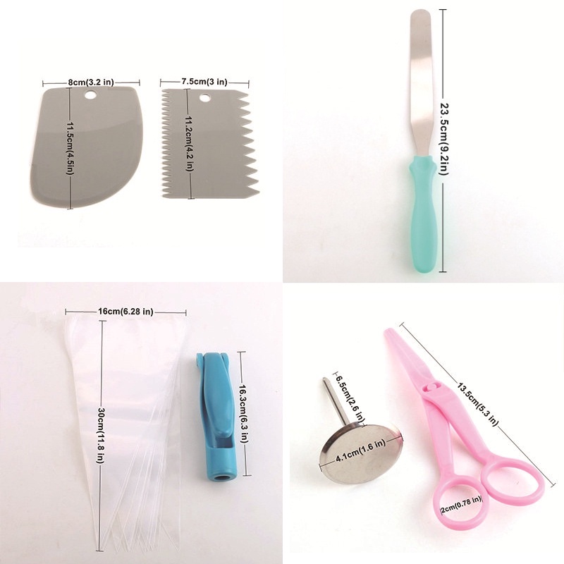 6. Dụng cụ trang trí bánh: ống nối, túi đựng ống có thể tái sử dụng, móng hoa và bút trang trí, giúp bạn tạo ra tất cả các loại hoa văn đẹp mắt trên bánh kem, bánh cupcake, pie và biscuit.