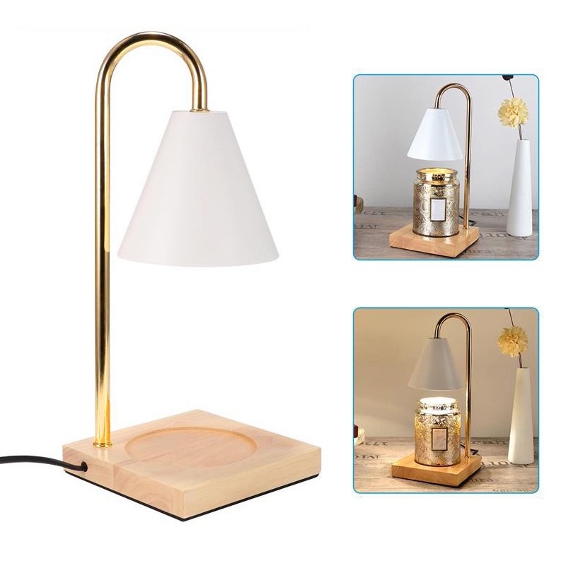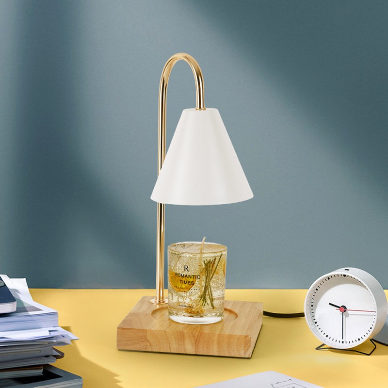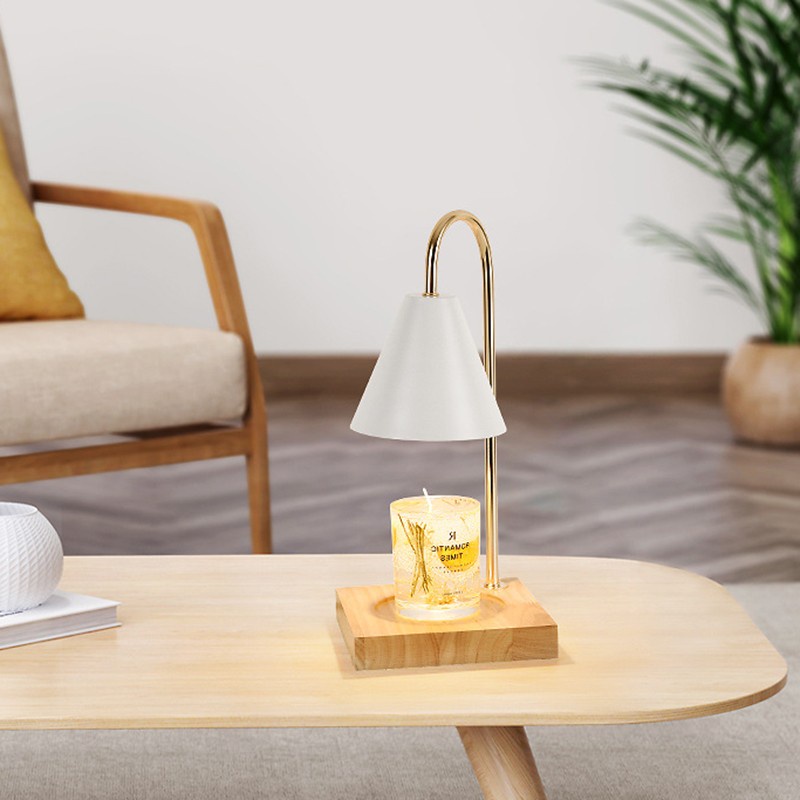 Đèn đốt nến thơm không khói phong cách Bắc Âu,thiết kế đế gỗ - BEE114