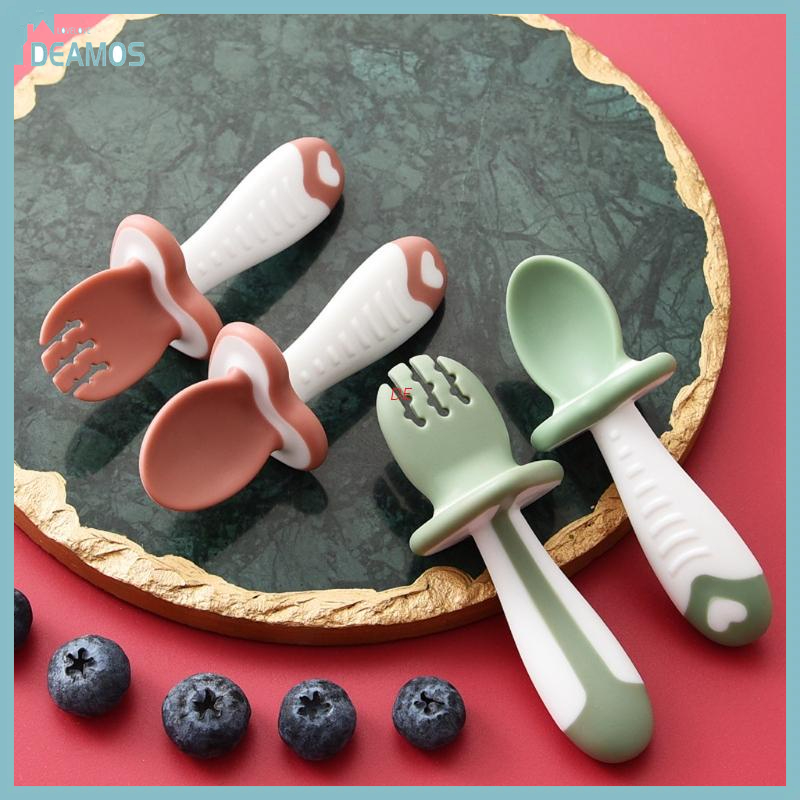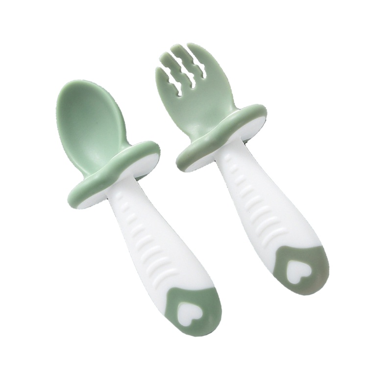Bộ 2 muỗng thìa nĩa có tay cầm mềm không chứa BPA cho bé tập ăn giá rẻ - BEB056