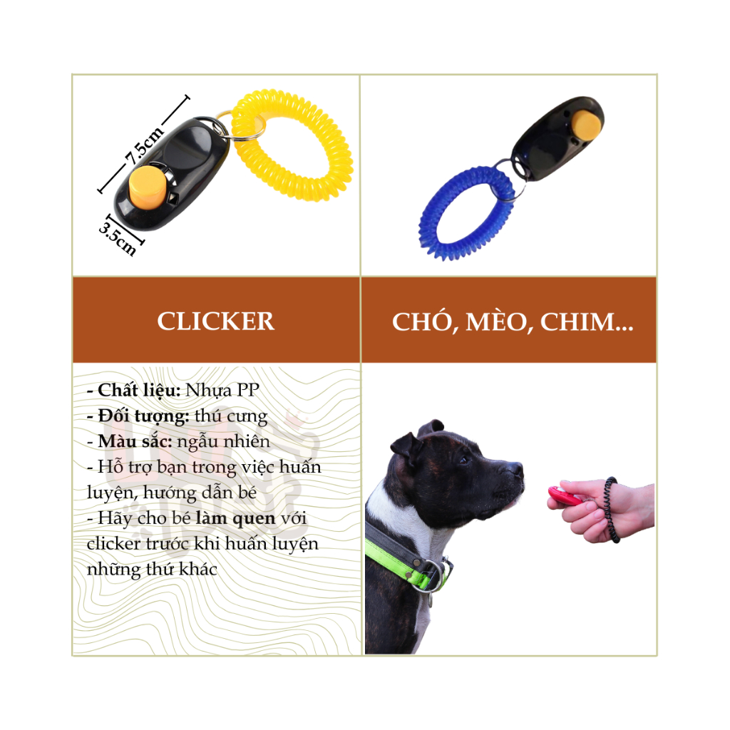 Tập cho chó làm quen vs clicker Nguyên tắc nghe có vẻ dễ, nhưng để huấn luyện chó thành công với clicker, bạn cũng phải bỏ ra một chút công sức. Trong thời gian đầu cho cún làm quen với clicker, bước đầu tiên bạn phải làm chính là dạy cho cún nhận thức được nghe tiếng tách đồng nghĩa là nó sắp được ăn.