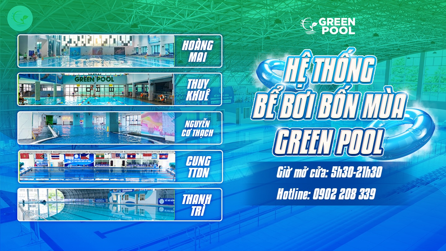 Hệ thống bể bơi bốn mùa Green Pool cung cấp những dịch vụ bơi bốn mùa, đào tạo từ bơi cơ bản đến nâng cao, đào tạo thi đấu và tổ chức thi đấu cho các đơn vị có nhu cầu.