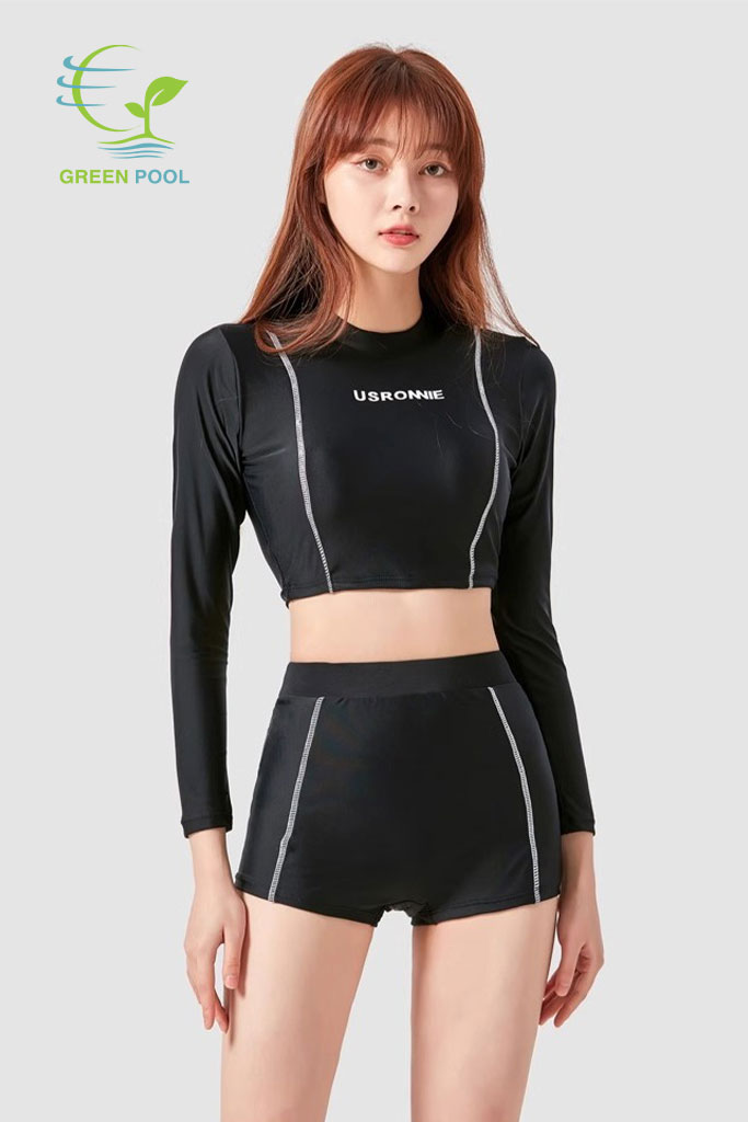 - Set đồ bao gồm: áo dài tay, quần bơi