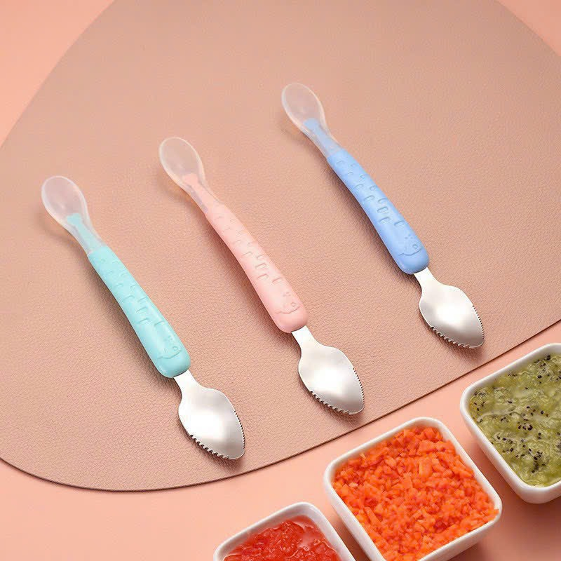 Thìa muỗng nạo 2 đầu silicon và inox nạo nhỏ hoa quả giá rẻ - BEB050