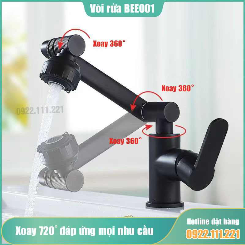 - Kiểu thiết kế : vòi rửa đứng, xoay 360 - 720 độ